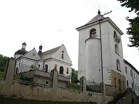 Records mention a wooden church existed at this site already in the 13th century during the reign of Leo I of Halych. During the second half of the 15th century a monastery was built next to the church. A stone church was built in 1550 and in 1585 a monastery surrounded with fortifications. The church was destroyed and rebuilt several times. Damaged by Turks in 1672, it underwent a major reconstruction in 1680. In 1776 the church was connected with the previously separate chapel of the Holy Trinity, adjoining it to the north, a new classicist bell tower was built in 1820 and in the years 1821-1824 the presbytery was extended and a sacristy added. The church's present day look dates to 1902 when the southern nave was constructed symmetrically and both were topped with hexagonal domes. Inside the church holds 18th century polychromies and an iconostasis from 1908.