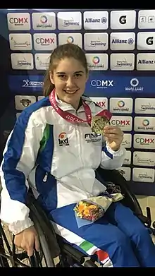 She graduated from University of Pavia. She competed at the 2017 World Para Swimming Championships, and 2019 World Para Swimming Championships.[3][4] She was recently reclassified to an S5 swimmer.[5]