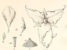 | Botanical illustration of a Monodora minor flower and floral parts.[1] | |