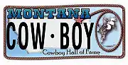 A mockup of the Montana Cowboy Hall of Fame specialty license plate.