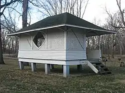 Monterey Bandstand, also known as Kleckner Park Bandstand, is a historic bandstand located at Monterey, Pulaski County, Indiana. It was built in 1912, and is a wood-frame structure measuring 12 feet, 6 inches, wide, and 20 feet long. It is raised on 30 inch high piers. The building has a hipped roof and exhibits Queen Anne style design elements. The bandstand was restored in 1979.[2]:3