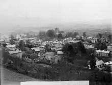View of Montgomery with Montgomery Castle in the background