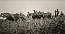 The Saskatchewan Relief Commission helped people survive these years of hardship. Province-wide, the Commission spent $31.5 million, and a committee was formed to manage relief efforts in each municipality.[28] People survived through helping one another as well. Those in areas getting by would help those more in need. Neighbouring towns provided food and clothing to one another when in need, and aid came from Eastern Canada on the railway.[28] There was one incident reported in the Leader Post on March 13, 1939, where two tons of relief hay were stolen.[29] Although incidents like this did happen, this period helped the citizens realize the importance of community and cooperation in order to survive difficult times.