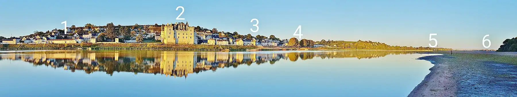 2-mile Montsoreau Skyline Panorama from Quai Alexandre Dumas to Than Island, taken in October 2018 from Than Island, Loire Valley.