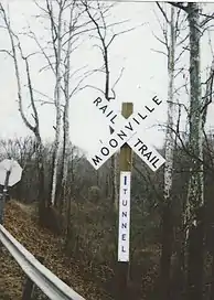 Sign denoting the entrance to the Moonville rail-trail, located just before the bridge to the East entrance to the tunnel