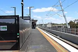 Mooroolbark has a train station which is on the Lilydale railway line. It has 595 car parking spaces.[10] The station was rebuilt in 2021 as part of the Level Crossing Removal Project.[11]