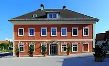 The Gothic Sts Michael and George parish church was first mentioned in a 1368 deed, it was rebuilt after demolitions by Ottoman forces in 1479. A Baroque east facade was added in the late 18th century.
