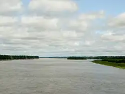 The Moose River is a river in the Hudson Plains ecozone of northern Ontario, Canada. The river flows 100 km northeast from the confluence of the Mattagami and Missinaibi Rivers into James Bay. Its drainage basin is 108,500 square kilometres (41,900 sq mi) and it has a mean discharge rate of 1,370 cubic metres (48,000 cu ft). Its full length is 547 kilometres (340 mi) if counted from the head of the Mattagami River.[1]