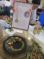 Morcón or morconito (also spelled morkon or morkonito), is a Philippine braised beef roulade made with beef flank steak stuffed with hard-boiled eggs, carrots, pickled cucumber, cheese, and various sausages.[1] It is commonly served during Christmas and other festive occasions.[2]