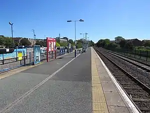 The ticket office is staffed from the early morning until mid-afternoon, six days per week (closed Sundays). Passengers can purchase tickets (or a permit to travel) from a ticket vending machine at the station at other times. A waiting shelter is provided, along with a P.A system and digital information screens.[1] There is step-free access to the platform from the station entrance and ticket office.[2]