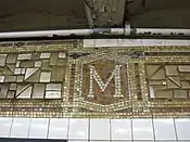 This station has two tracks and two side platforms. Both platforms have their original BMT style mosaic trim line and name tablets that are predominantly earth tones of brown, tan, orange with white accents.[17] There are "M" tablets for "Morgan" on the trim line at regular intervals and name tablets that have "MORGAN AVE" in serif font.[17] There are also directional mosaic signs in the same style as the name tablets.[17]