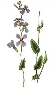 Moricandia is a genus of plants of the family Brassicaceae. This genus is mainly distributed in North Africa, the Middle East, and Southern Europe. It is associated with arid and semi-arid environments. Flowers of this genus are actinomorphic-dissymmetrical and mostly lilac in color, although they vary from white to purple depending on the species and climatic conditions. Some species show extreme phenotypic plasticity for flower size, shape, and color.[1] The fruits are two-valved dehiscent siliques with one or two sets of seeds per valve.[2]