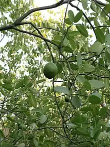 Morisonia speciosa is commonly known as bola verde. Other common names for the species include amarguillo, anquitsuk, ancocha, palo verde, payaguá naranja, sacha limón, and sacha naranja.[3] The fruit is referred to as atsaj by the Wichí and neloma by the Qomle'ec (Toba) and in Pilagá.[4]