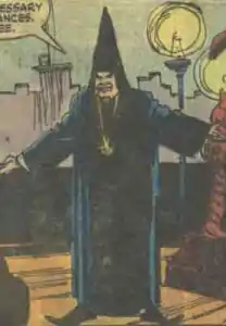 Morning Star planned to use Moon Knight as a human sacrifice, and afterwards to have his followers drink the blood of the Werewolf by Night to give them "the power of the Beast". However, Moon Knight escaped his captors and helped the Werewolf by Night escape as well.[5] Morning Star immediately sent his men to recapture the two, but the cultists were defeated. Moon Knight and the Werewolf by Night later infiltrated the cult, returning to Morning Star's offices, where they engaged in battle to defeat the rest of the members. During this melee, the Werewolf by Night threw Morning Star from the roof of the 41-story Tishman Building, killing him.[6]