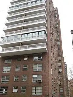 Morningside Gardens is a private housing cooperative operated by Morningside Heights Housing Corporation (MHHC) in Morningside Heights, Manhattan, New York City. It is composed of a parking garage and six apartment buildings of 21 stories each, for a total of about 980 apartments. MHHC rents space to the Children's Learning Center preschool and the Morningside Retirement and Health Service. The complex has many amenities for its cooperators including a playground, a fitness center, storage units, indoor play spaces for children and young adults, bike rooms, and a workshop including ceramics and woodworking.[1]