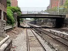 Originally, the station had a brick station house over the tracks on the tracks on the south side of the 168th Street bridge. Prior to the elimination of grade-crossings, the surface station had been located at 167th Street.[5] There was no ticket agent at the station toward the end of its use. In 1964, only 40 daily commuters used the station. The New York Central Railroad was authorized to demolish the station in 1959.[6] The station closed on July 2, 1973 along with several other stations in Penn Central's Metropolitan Region.[7][1]