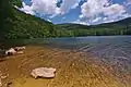 Morské oko (called Veľké Vihorlatské jazero in the past; literally "Eye of the sea") is a lake in the Vihorlat Mountains in eastern Slovakia. It is the largest non karst lake and the third biggest natural lake in Slovakia. It is at an altitude of 618 m, covers 0.13 km² with a maximum depth of 25.1 m. It is drained by the river Okna.
