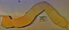 In 2002 the mortichnia of a horseshoe crab was found in lithographic limestone in Bavaria, Germany.[2][1] The trail measured 9.7m and was left about 150 million years ago when the crab died in an anoxic lagoon.[1] The footprints left enough evidence for researchers to determine that the creature probably fell into the lagoon upside-down, righted itself, and started walking before succumbing to the anoxic conditions of the water.[1] The trackway is currently exhibited at the Wyoming Dinosaur Center.[3]