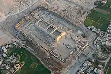![]() Mortuary Temple of Ramesses III, from the air on the East side. The long wall facing the camera is the Northeast wall. | |