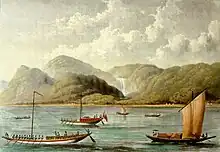 ![]() The Moti Jharna waterfall in the Rajmahal Hills, by Sita Ram in 1820 | |