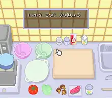 Motoko-chan no Wonder Kitchen (もと子ちゃんのワンダーキッチン, "Little Motoko's Wonder Kitchen")[2] or Motokochan in Wonder Kitchen is a 1993 Super Famicom point-and-click video game that features minigames related to cooking. The game was a promotional item with a production run of 10,000 units which were used for a lottery contest. Consumers who mailed in two proof of purchase seals from Ajinomoto mayonnaise received a copy of the game and were entered into the contest, which was run over five months with 2,000 prizes given away monthly.[3]