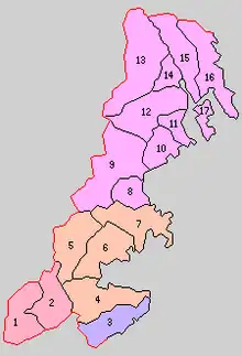 colored area=original extent in Meiji period; green=present area