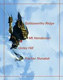 Features include the Goldsworthy Ridge in the north, Onley Hill in the south, and Fischer Nunatak south of the massif.[8]