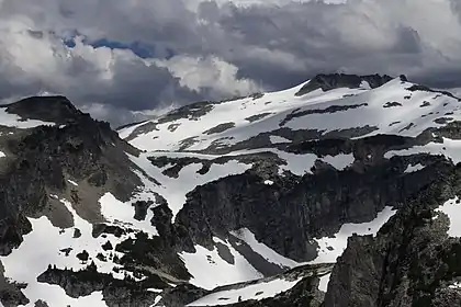 The Alpine Lakes Wilderness features some of the most rugged topography in the Cascade Range with craggy peaks and ridges, deep glacial valleys, and granite walls spotted with over 700 mountain lakes.[6] Geological events occurring many years ago created the diverse topography and drastic elevation changes over the Cascade Range leading to the various climate differences. Mount Hinman is a stratovolcanic remnant.