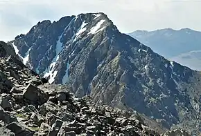 Mount Idaho, at 12,065 feet (3,677 m) above sea level is the seventh highest peak in Idaho and the sixth highest in the Lost River Range. The peak is located in Salmon-Challis National Forest in Custer Countyin the US State of the same name. It is 2.2 mi (3.5 km) south of Borah Peak, its line parent, and 2.8 mi (4.5 km) northwest of Leatherman Peak. Merriam Lake is in the basin to the northeast of the peak.[2][3][4]