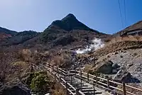 Mount Kanmuri (Japanese: 冠ヶ岳 = Kanmuri-ga-Take, meaning the "mountain with a Kanmuri hat") is one of the peaks of Mount Hakone, in Hakone, Kanagawa, Japan, with an elevation of 1,409m meters.[1] When the phreatic eruptions occurred on the northwestern slope of Mount Kami about 2,900 years ago, the underground magma created a lava dome, which is the current Mount Kanmuri. These eruptions caused the damming of the Haya River, creating the Sengokuhara and Lake Ashi.