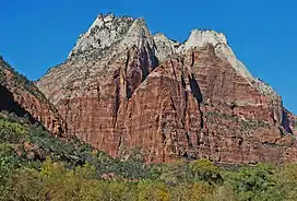 Mount Majestic, also known as Majestic Mountain, is a 6,956-foot (2,120 m) elevation Navajo Sandstone double-summit mountain located in Zion National Park, in Washington County of southwest Utah, United States.[3]