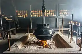 Kiezu-no-hi (The eternal flame) This is the holy fire said to have been started by the Japanese Buddhist monk Kobo Daishi, who founded the Daishoin Temple in 806. It still burns today and the holy water boiled by this fire is used to treat diseases. This fire was used as the pilot light for the 'Flame of Peace' in Hiroshima Peace Memorial Park.