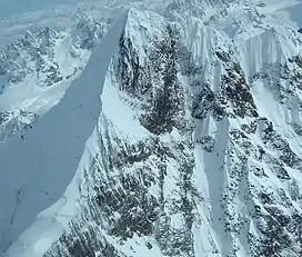 The first and only summit to date was achieved in 1995 by seasoned climbers Steven Carroll, Philip Kauffman, and Patrick Simmons. Despite the climbers' preparedness and experience, the climb was ill-fated. The three climbers were killed in an avalanche, on the descent, that was caused by unseasonable changes in weather conditions.[2][3]