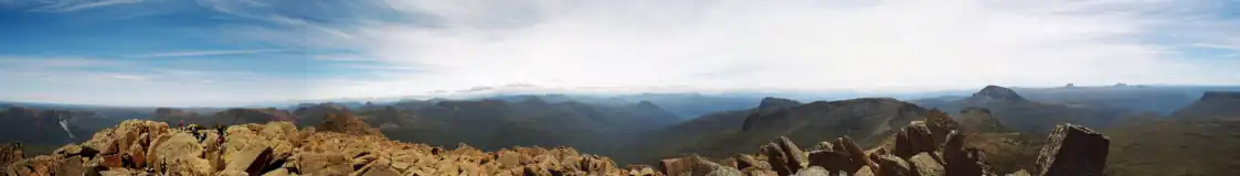Mount Ossa is the highest mountain in Tasmania, with a summit elevation of 1,617 metres (5,305 ft) above sea level.[3] It makes up part of the Pelion Range within Cradle Mountain-Lake St Clair National Park in the Central Highlands region of Tasmania, Australia.