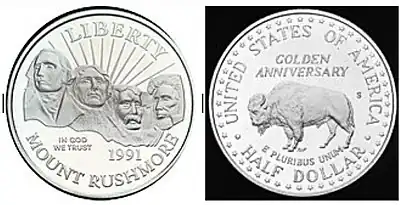 - ↑ "1991 Mount Rushmore Anniversary Coins". United States Mint. Retrieved 2021-05-16.