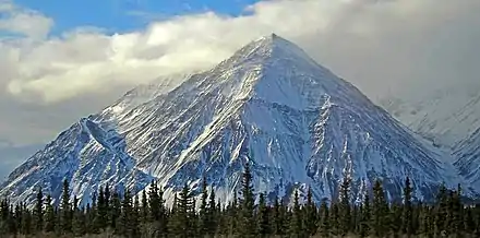 Mount Worthington is a 2,168-metre (7,113-foot) mountain summit in the Auriol Range of the Saint Elias Mountains, in Kluane National Park of Yukon, Canada.[1] The mountain is situated above the shores of Kathleen Lake, 7.2 km (4 mi) northwest of Kings Throne Peak across the lake, and 19 km (12 mi) south-southeast of Haines Junction, Yukon. The mountain can be seen from the Haines Highway as it prominently rises 1,570-metre (5,150-foot) above the lake. The mountain's name was officially adopted August 12, 1980, by the Geographical Names Board of Canada.[1] Based on the Köppen climate classification, Mount Worthington is located in a subarctic climate with long, cold, snowy winters, and mild summers.[2]