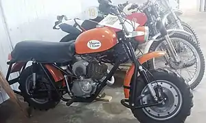 The prototype took two years to develop and in 1963 the bike was put on sale. It was powered by an 80 cc Suzuki motor with a four-speed gearbox, weighed 70 kg, unpainted, and had a low centre of gravity. The low gear enabled the bike to travel at walking pace and its top speed was 50 km/h. The rear tyre was from a rotary-hoe.[4]
