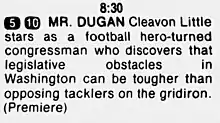 Mr. Dugan is an American sitcom about a black Congressman that was scheduled to air in March 1979 on CBS, but was pulled at the last minute and never shown.[1]