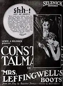 Mrs. Leffingwell's Boots is a 1918 American silent comedy film directed by Walter Edwards and starring Constance Talmadge, Harrison Ford and George Fisher.[1]
