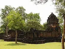 Four monuments are located inside the area of 736,000 m² enclosed by a laterite wall. The south wall winds along the Khwae Noi river course, while the other three sides are quadratic. The main monument is in the center of the area. Northwest of this are the foundations of a second temple building. The other two monuments are of much smaller scale.