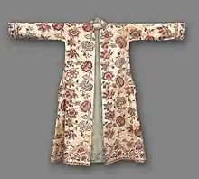 Mughal clothing refers to clothing adhered by the Mughals in the 16th, 17th and 18th centuries throughout the extent of their empire . Much of them were already being used in the past centuries before their arrival in Indian subcontinent . It was characterized by luxurious styles and was made with muslin, silk, velvet and brocade.[1] Elaborate patterns including dots, checks, and waves were used with colors from various dyes including cochineal, sulfate of iron, sulfate of copper and sulfate of antimony were used.