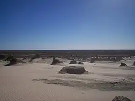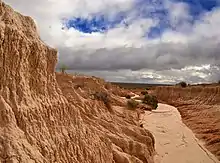 Mungo National Park is a protected national park that is located in south-western New South Wales, in eastern Australia. The 110,967-hectare (274,210-acre) national park is situated approximately 875 kilometres (544 mi) west of Sydney in the Balranald Shire. Mungo National Park is the traditional meeting place of the Muthi Muthi, Nyiampaar and Barkinji Aboriginal Nations. People are no longer able to climb the sand dunes by themselves as stricter rules have been enforced, all visitors groups need to be accompanied by an accredited tour guide to access the sand dunes.