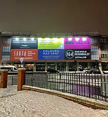 At the south corner of the building was Leeds Gallery, an independent commercial art gallery.,[8][9][10][11] the gallery changed its name to The Gallery at 164,[12] but never reopened after COVID-19. Next door was Colours May Vary, an independent book shop, which moved to a new location in the Corn Exchange in 2021[13] - this space is now occupied by an office of La Marzocco, the Italian coffee machine manufacturer. Sarto, a pasta restaurant, is on the St Peter's Square side.
