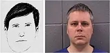 In October 2013, an Oklahoma crime lab began re-examining fingerprints taken from scenes of unsolved murders.[24] In February 2014, Creek's case was reopened; examiners in an Oklahoma crime lab were able to match a thumbprint on the garbage bag concealing the body to James Paul Eaton, a 36-year-old divorced man.[25][26][27] Eaton was nineteen at the time of the murder and lived in Palatine, Illinois, the same town as Creek.[8][14][28][29] One of the men seen with Amber in early February 1997 bore a strong resemblance to Eaton.[17][30] Eaton's fingerprints were not on record at the time of the murder; they were recorded only in 2000 after his arrest for possession of drug paraphernalia.[12][24][31] Investigators located the suspect in Chicago, and on March 22 they collected discarded cigarette butts to match his DNA to that found at the crime scene.[32] Eaton was arrested in early April and is incarcerated in Racine, Wisconsin.[33] Authorities also looked through his computer, Facebook profile and phone, as well as searching his residence for possible souvenirs from the scene, as some of Amber's belongings had been suspected to have been taken by her killer.[9][34]