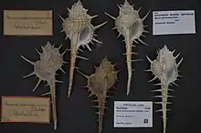 - ↑ Houart, R. (2009). Murex aduncospinosus Sowerby, 1841. Accessed through: World Register of Marine Species at http://www.marinespecies.org/aphia.php?p=taxdetails&id=404971 on 2010-05-18