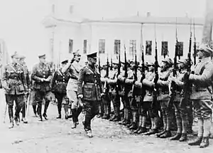 Due to an insufficient number of soldiers and officers, as many of the experienced staff members were gradually sent to France in order to reinforce Polish units there, Zeligowski decided not to create a division. Several smaller units were formed instead, with the material support of the British, with whom Poles cooperated against the Bolsheviks. The first Polish unit in northern Russia was created in June 1918 in Kola: it consisted of a company of rifles, together with a platoon of machine guns (altogether some 200 men).[1] The second unit was the so-called Northern Dvina River Detachment (Oddzial Dzwinski), formed of Polish soldiers from Arkhangelsk. When on July 31, 1918, an antibolshevik rebellion broke out in this city, Poles joined the fight.