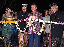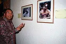 Mr. Jero Wacik, Minister of Culture and Tourism of Indonesia at the 50th Anniversary of Museum Puri Lukisan on July 14, 2008. Shown are the photographs of the two founders of the Museum: the Dutch artist Rudolf Bonnet (left) and the King of Ubud - Tjokorda Gde Agung Sukawati (right).