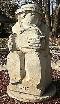 Music is a public art work by Karl Kahlich located in Monument Park at the Parklawn development of the Housing Authority of the City of Milwaukee, northwest of downtown Milwaukee, Wisconsin. Music is carved from local limestone and depicts a figure in a cap holding a circular instrument on his lap.[1] The sculpture was installed in 1938 as one of four public artworks based on the theme of leisure activity.[2]