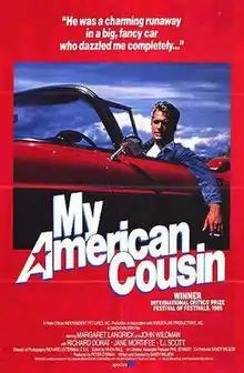 My American Cousin is a Canadian drama film, released in 1985. Written and directed by Sandy Wilson based on her own childhood, the film stars Margaret Langrick as Sandy Wilcox, a preteen girl growing up on a ranch in rural Penticton, British Columbia in the late 1950s. Sandy's longing to be treated as an adult is roused even further when her older American cousin Butch Walker (John Wildman) comes for a visit. The cast also includes Richard Donat, Jane Mortifee, Babz Chula and Camille Henderson.