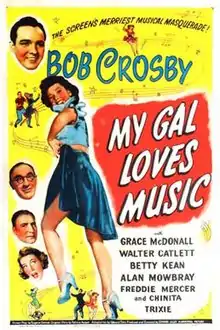 My Gal Loves Music is a 1944 American comedy film directed by Edward C. Lilley and written by Eugene Conrad and Edward Dein. The film stars Bob Crosby, Grace McDonald, Alan Mowbray, Betty Kean, Walter Catlett and Freddie Mercer. The film was released on December 1, 1944, by Universal Pictures.[1][2][3]